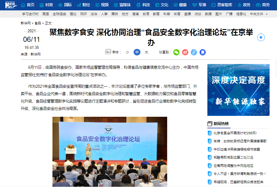 6 月 11 日,由國務院食安辦、國家市場監(jiān)督管理總局指導,科信食品與健康信息交流中心主辦,中國市場監(jiān)管報社支持的“食品安全數(shù)字化治理論壇”在京舉辦。