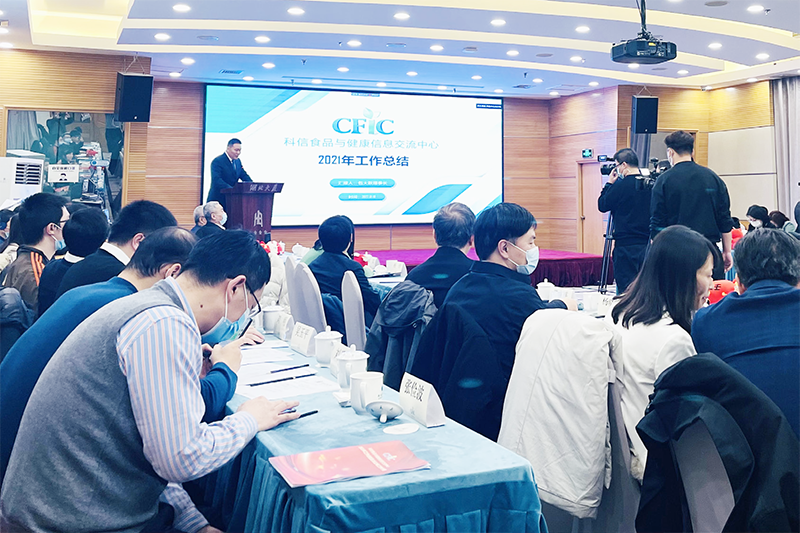 2022 年 1 月 14 日,科信食品與健康信息交流中心(以下簡稱“科信中心”)在京召開食品與健康信息交流暨科信中心 2021 年工作總結會。會議由科信中心主任鐘凱主持。國家衛生健康委員會食品司一級巡視員張磊時、國家市場監督管理總局標準技術管理司副司長陳洪俊、國家市場監督管理總局抽檢司副司長陳少洲、海關總署進出口食品安全局局長畢克新、國家市場監督管理總局食品審評中心副主任聶大可應邀出席會議并作主題分享。