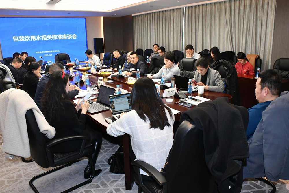 為凝聚各方共識、推動食品安全國家標準中包裝飲用水相關指標的修訂進程,受國家衛健委食品司委托,科信食品與健康信息交流中心于 2025 年 2 月 28 日組織召開專題座談會。國家衛生健康委員會食品安全標準與監測評估司標準處處長馬寧,國家食品安全風險評估中心副主任樊永祥、技術總師吳永寧、標準二室主任王君、標準二室副主任邵懿,中國飲料工業協會副秘書長楊永蘭受邀出席會議,十余名行業代表參加會議。