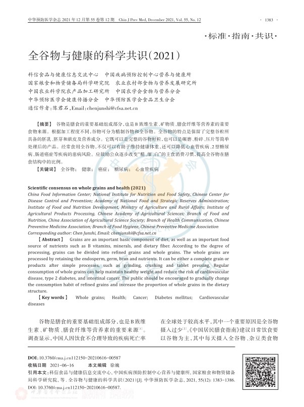 谷物是膳食的重要基礎組成部分,也是B 族維生素、礦物質、膳食纖維等營養素的重要食物來源。根據加工程度不同,谷物可分為精制谷物和全谷物。全谷物的特點是保留了完整谷粒所具備...