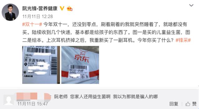 然后就有網友留言,阮老師 您家人還用益生菌啊 我以為那就是騙人的呢?
