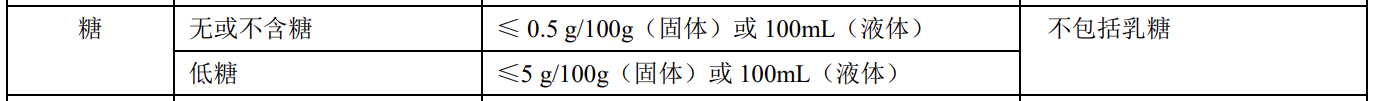 按照我國營養(yǎng)標簽標準規(guī)定,如果食品中糖含量≤5g/100g(或100ml),屬于“低糖”食品,糖含量≤0.5g/100g(或100ml),就屬于“無糖”食品。