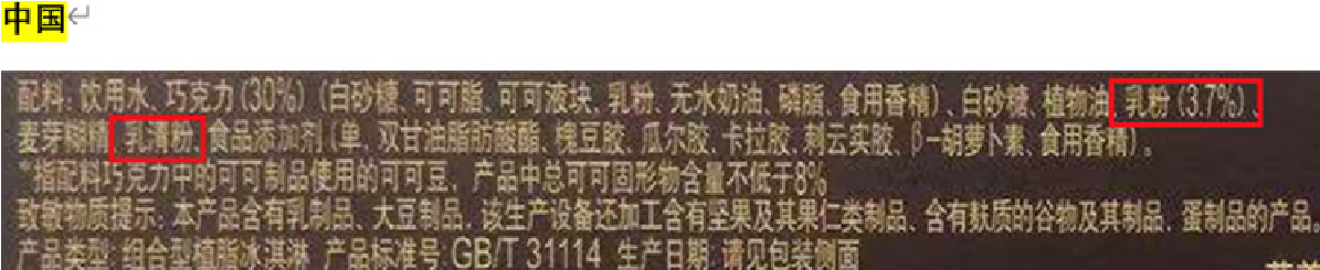 比如英國的同時用了復原脫脂奶、全脂奶粉、乳清固體;加拿大的同時用了濃縮脫脂奶、乳清粉、全脂奶粉、濃縮乳清蛋白;而中國只用了奶粉和乳清粉。