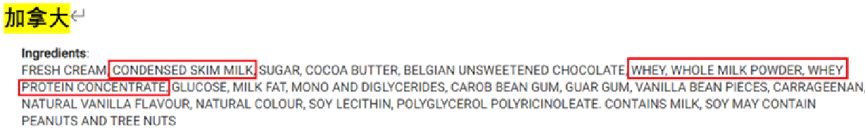 我特地上網搜了下中國、英國和加拿大超市里某品牌同款冰淇淋的配料表,你一看就明白了。