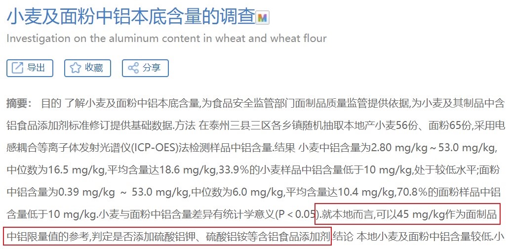 媒體原文稱:“歐洲食品安全局早在2008年就采納了一項關于通過飲食攝入鋁的安全性問題的建議,規定面制品中鋁含量不得超過10mg/kg。在此后的多年里,常有來自中國的面制品因鋁含量超過該限值而被歐盟禁止入口。”