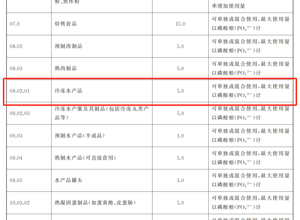 按我國相關標準,在蝦仁等冷凍水產品中磷酸鹽的使用量是不超過 5g/kg(以磷酸根離子計)。