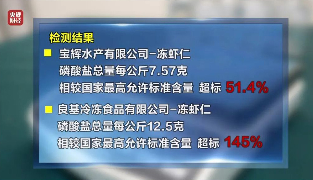 節目中,工作人員表示,這樣的保水蝦仁,他們自己不吃,“我們沿海地區都是吃(新鮮)海蝦”。節目中還說,長期過量攝入磷酸鹽可能會帶來健康風險,例如消化系統問題、導致人體的鈣磷比失衡、缺鈣、引發心血管疾病。泡完藥的蝦仁被迅速送入冰凍環節包冰,“包冰衣最高能包到 70%,一斤解凍之后只有三兩蝦仁。”