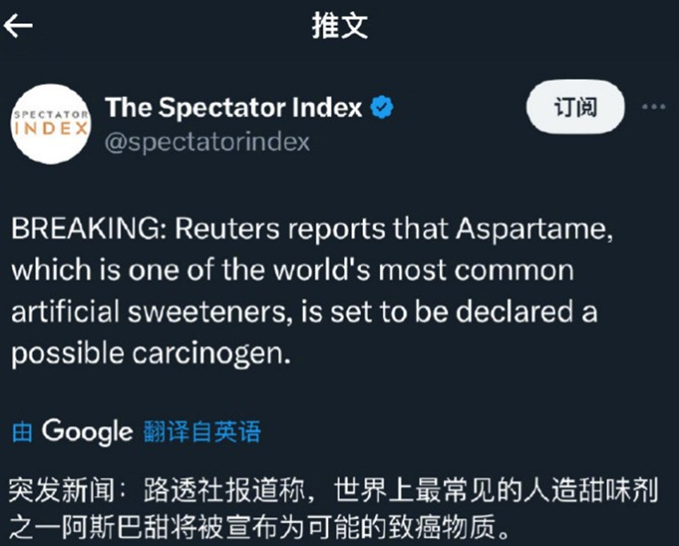 今天出了一條新聞,路透社報道稱,世界上最常見的人造甜味劑之一阿斯巴甜將被宣布為可能的致癌物質。由于阿斯巴甜廣泛用于無...