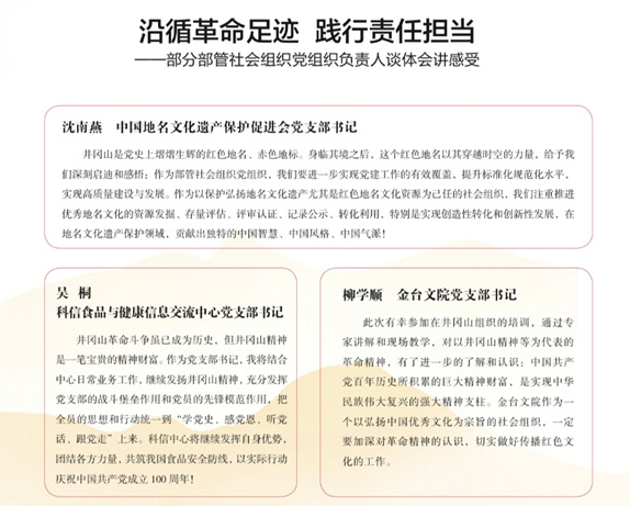 為深入推進(jìn)部管社會(huì)組織黨史學(xué)習(xí)教育,強(qiáng)化學(xué)習(xí)教育成效,進(jìn)一步提升部管社會(huì)組織黨組織負(fù)責(zé)人黨建工作能力,5 月 7 至 8 日,民政部部管社會(huì)組織綜合黨委在江西省井岡山干部教育學(xué)院。