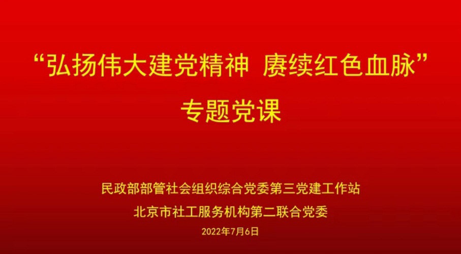 7月6日下午,民政部部管社會組織綜合黨委第三黨建工作站和北京市社工服務機構第二聯合黨委聯合組織開展“弘揚偉大建黨精神 賡續紅色基因血脈”專題黨課學習,這是第三黨建工作站組織開展的以“慶‘七一’ 喜迎二十大”為主題的系列活動之一。科信中心黨支部組織全體黨員和入黨積極分子參加此次線上學習活動。