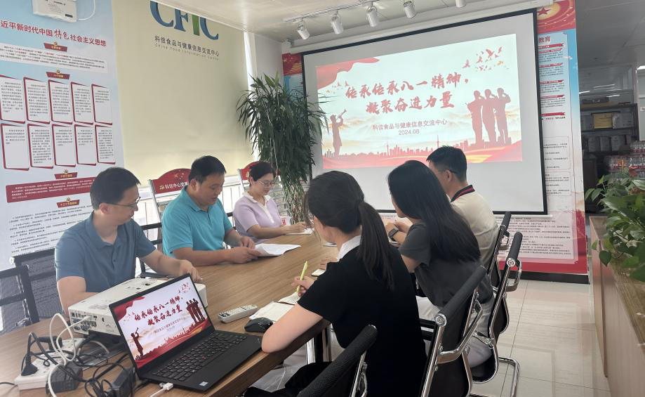 為進一步傳承發揚八一精神,頌揚中國人民解放軍保家衛國的奮斗精神,引導黨支部成員厚植家國情懷,增強擔當意識,提高黨支部凝聚力和號召力,2024 年 8 月 2 日,科信食品與健康信息交流中心黨支部開展了“傳承八一精神,凝聚奮進力量”主題黨日活動。會議由科信中心黨支部包大躍書記主持。