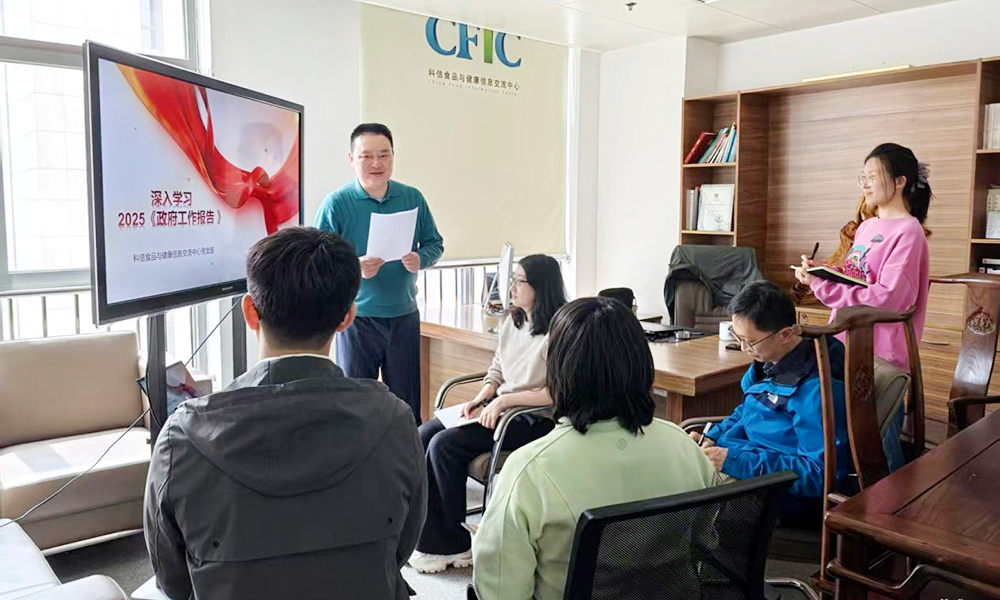 3月 6日下午,科信食品與健康信息交流中心黨支部組織全體黨員集體學習十四屆全國人大三次會議精神,深入領學《政府工作報告》。本次學習由科信中心黨支部書記包大躍主持,支部全體黨員參加。