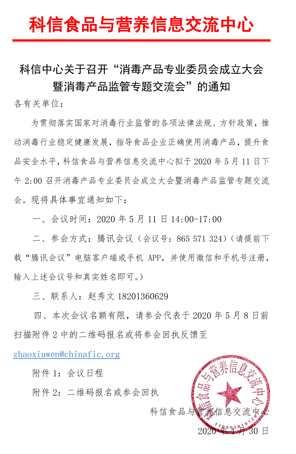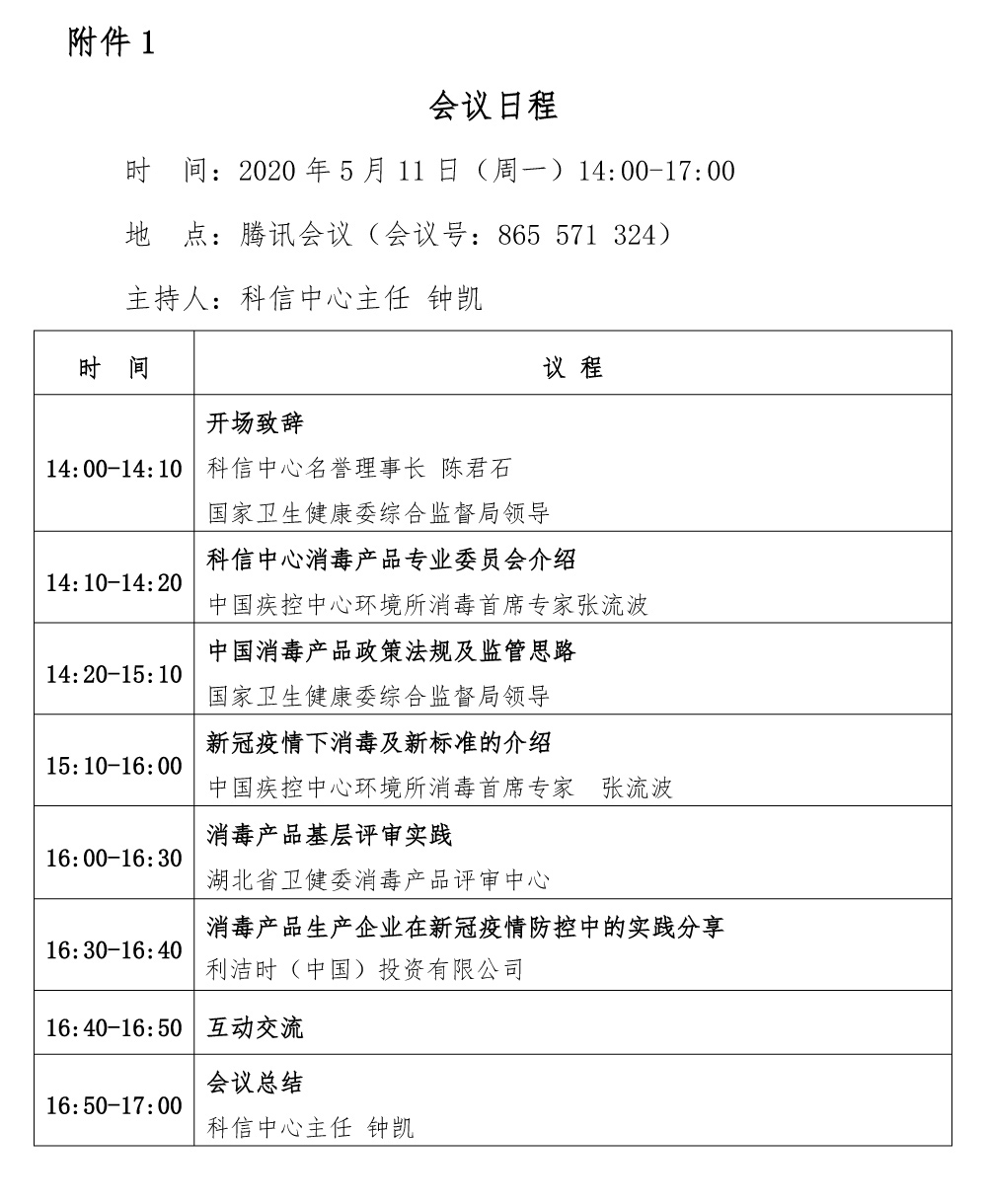科信中心關于召開“消毒產品專業委員會成立大會 暨消毒產品監管專題交流會”的通知
