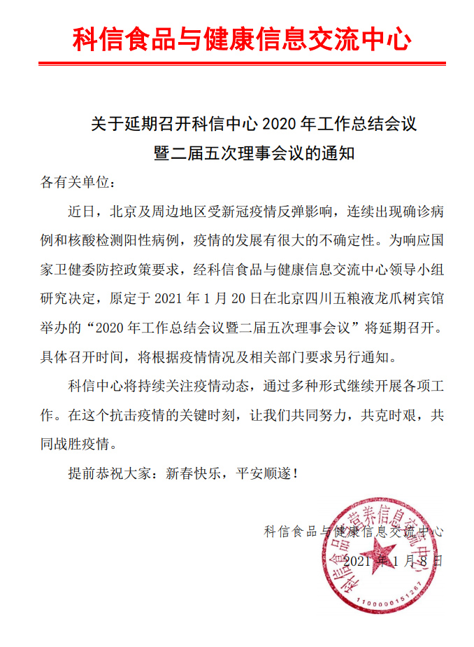 關于延期召開科信中心 2020 年工作總結(jié)會議暨二屆五次理事會議的通知
