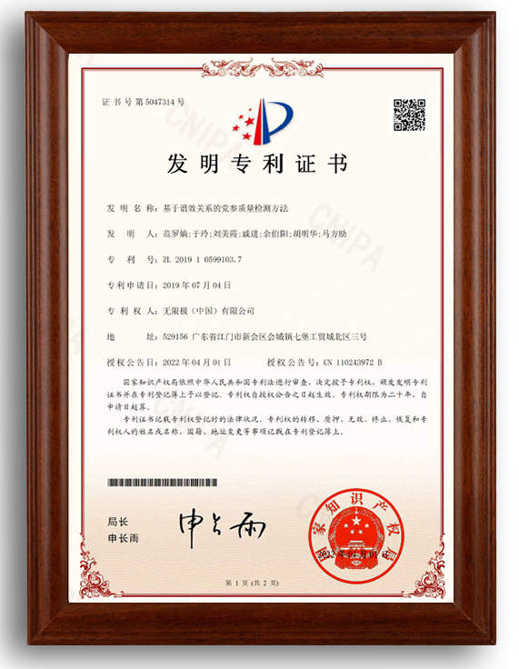 近日,無限極(中國)有限公司申請的發(fā)明專利——《基于譜效關(guān)系的黨參質(zhì)量檢測方法》正式通過國家知識產(chǎn)權(quán)局審查,并被授予...