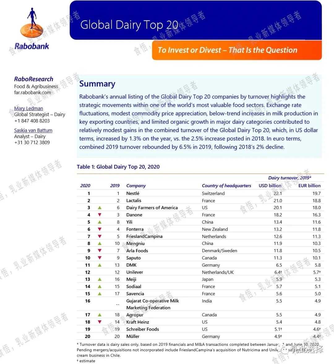 2020年全球乳業(yè)20強(qiáng)排行榜