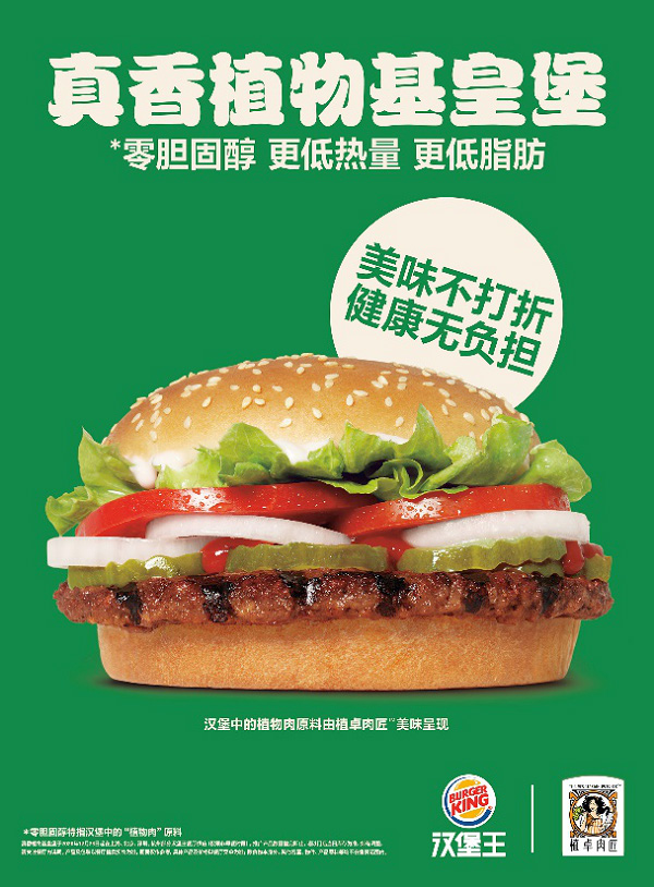 12 月 23 日,漢堡王中國宣布攜手聯(lián)合利華旗下“植卓肉匠(The Vegetarian Butcher)”,重磅推出漢堡王中國首款植物肉產(chǎn)品——“真香植物基皇堡”,從即日起至明年 4 月,消費者可以在北京、上海、杭州、深圳四城門店(特殊門店除外)購買到此款“真香植物基皇堡”,該款產(chǎn)品售價與經(jīng)典皇堡一致。