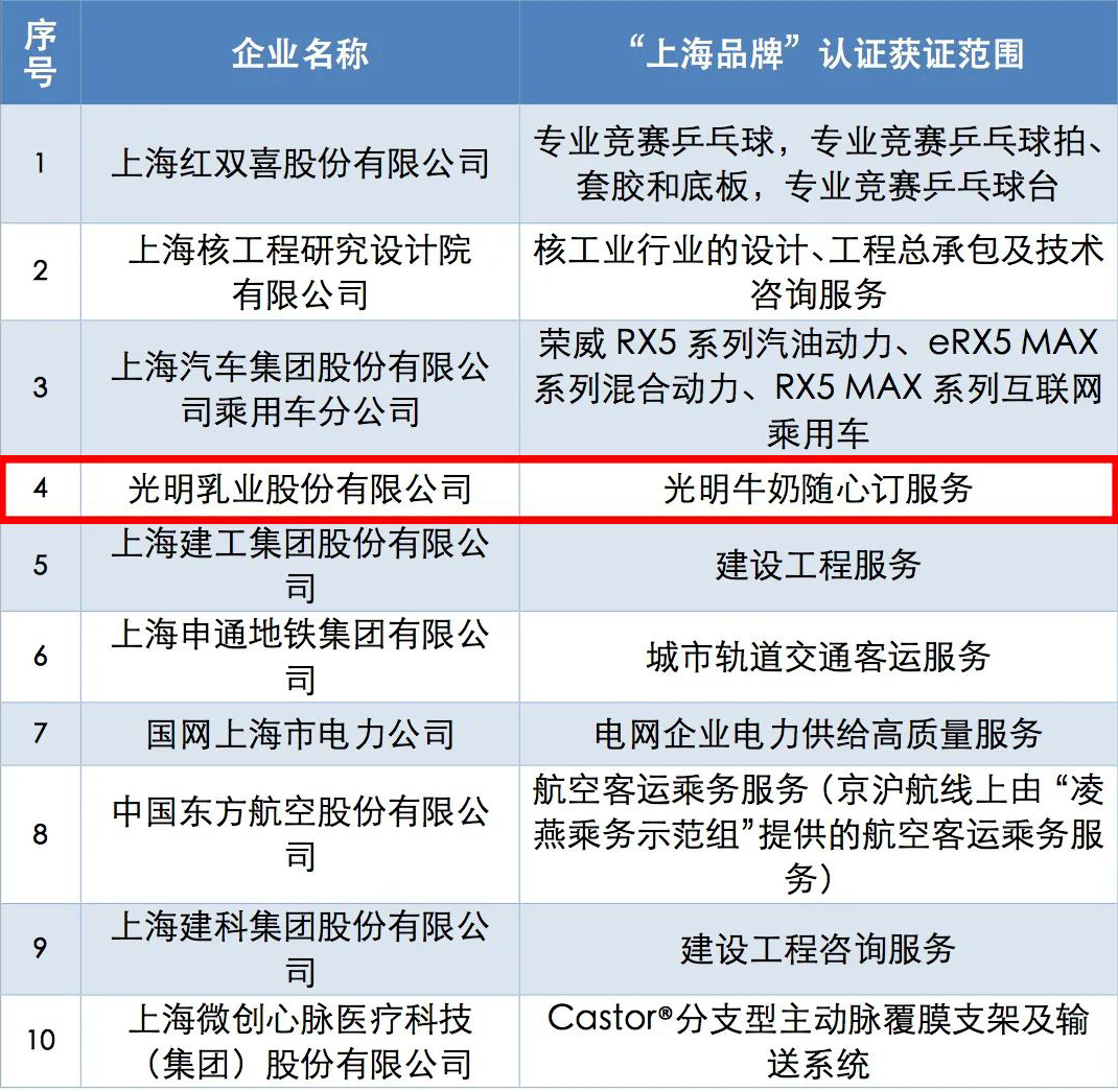 2022 年“上海品牌”認證制度五周年之際,“上品”卓越貢獻品牌評選活動又評選出了 10 個優(yōu)秀代表,其中光明隨心訂名列在位。這充分體現(xiàn)了一直以來光明乳業(yè)嚴格實施“以質(zhì)量為核心,以創(chuàng)新為動力,以品質(zhì)促品牌”的質(zhì)量戰(zhàn)略,再次用自身的品質(zhì)與服務,為品牌代言。2018 年光明乳業(yè)首次通過認證,成為首家以食品通過認證的企業(yè),2022 年光明隨心訂再創(chuàng)佳績,榮耀繼續(xù)。