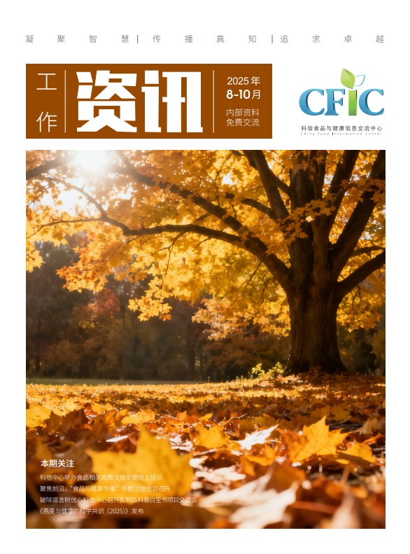本期關注:科信中心舉辦食品相關政策法規專題線上培訓,聚焦前沿,“食品與健康傳播”專題沙龍在京召開,破除謠言樹信心科信中心召開乳制品科普白寶書項目交流會,《燕麥與健康的科學...